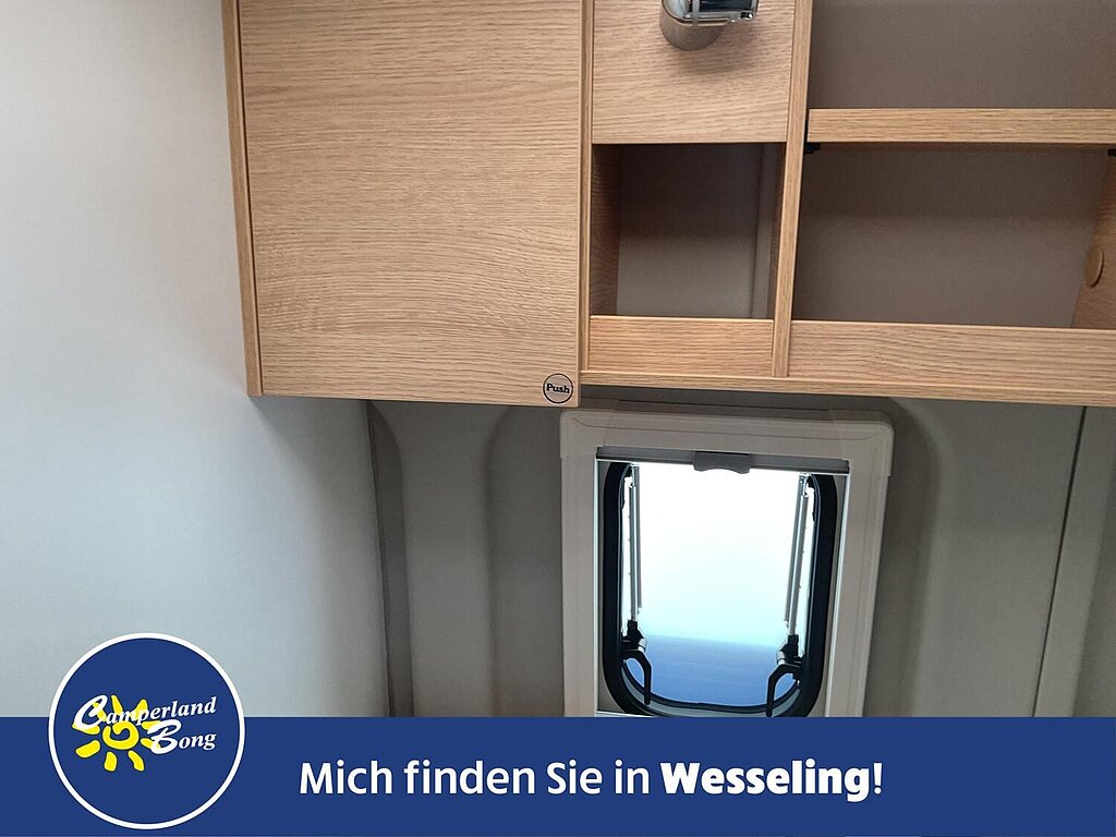 - Basic Paket (Panoramadachhaube 70 x 50 cm, Duschausstattung, Fenster im Bad, Kleiderstange in der Nasszelle, Breite Einstiegsstufe, Drehplatte für Tischerweiterung an der Sitzgruppe)