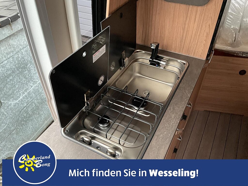 Kocher-Spülen-Kombination inkl. 2-Flammen-Kocher mit elektrischer Brennerzündung und geteilter Glasabdeckung (Abhängigkeit: ABH26087)